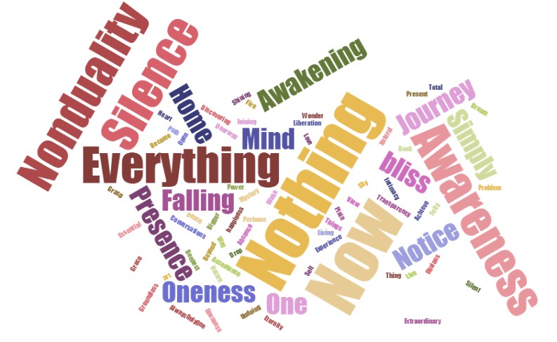 I took the titles from 47 prominent nonduality books and put them in a word cloud generator. Originally, I'd thought to poke fun at them, but the graphic below is oddly compelling to me.